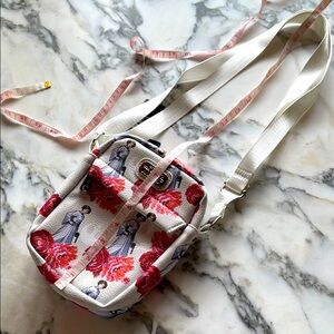 This Star Wars Princess Leia crossbody bag showcases a striking white and red color palette, perfect for fans of the franchise. Its compact, rectangular shape is adorned with vibrant character patterns, making it a standout accessory. The adjustable strap ensures a comfortable fit for any adventure. Please see pictures for measurements.