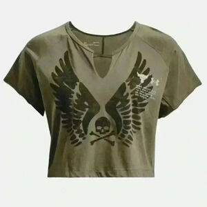 Under Armour Women's Project Rock Wings Army Green Workout Short Sleeve Size L