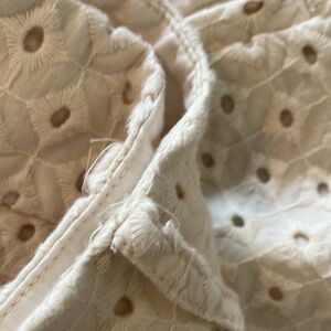 Ann Taylor Loft Eyelet Shorts. Size 4. Cream colored. Tiny front pocket; two back pockets that would be functional if threading was snipped. Loops for a belt. Delicate and feminine. Pre-worn; good, used condition.