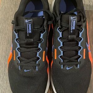 Nike Downshifter 13 Size 10.5 sneakers in black with orange and blue accents. In excellent condition, Stylish and comfortable.