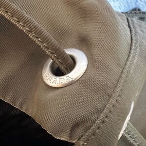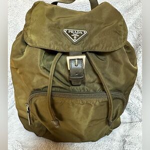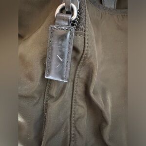See photos for wear and condition. There are some marks on the leather trim, buckles, and zipper pulls. Minor marks on the nylon. There are six white dots on the inside of one of the straps that could potentially be removed with care. However, since they are on the inside, you can’t see them when the bag is being worn. Otherwise in overall very good condition.