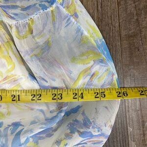 Embrace elegance with this floral spaghetti strap maxi dress. Featuring a blend of blue, yellow, and white hues, it's perfect for any occasion. I’m good condition.