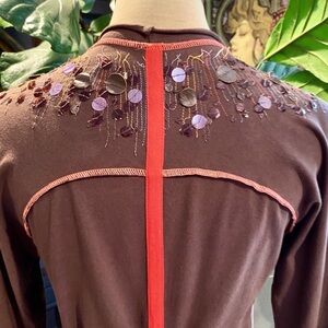 Anthropologie chocolate embellished wrap top