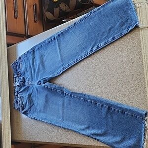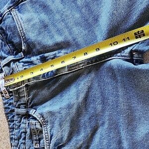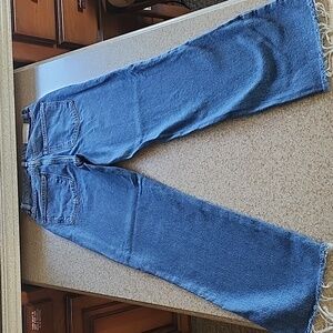 Zara High Waist Frayed Hem Jeans Size 24- see pics for measurements & wear, I took several measurements since the Size tags are faded, Assuming 100% Cotton since there is little to no stretch, 5 Pocket Style, Button/Zip Front Closure, Plain Back Pockets, Excellent Pre-Loved Condition.