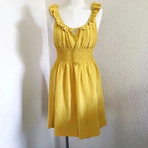 Anthropologie Floreat golden yellow/ Mustard 100% silk dress. Sleeveless with Ruffle Collar and stretch at waist band. Excellent condition!