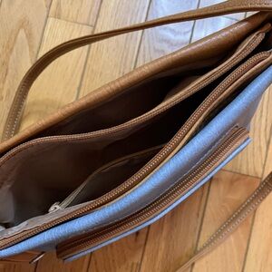Pre owned ,only used a couple of times. Excellent condition, front and back pocket. Three storage spots on inside. Like new, please look at photos. Adjustable strap, non smoking home