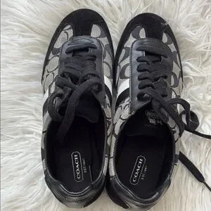 Step out in style with these Coach women's sneakers, featuring a chic black and gray design. Perfect for any casual outing.