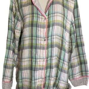 Sundance Powder Plaid Button Down Pajama Top, [Sz XL] 100% Cotton