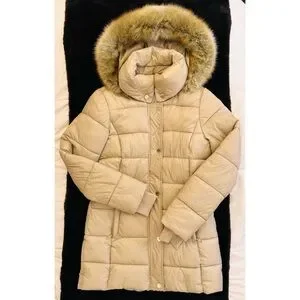 Michael Kors Faux Fur Trim Hooded Puffer Coat / Jacket Size Small Tan.