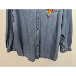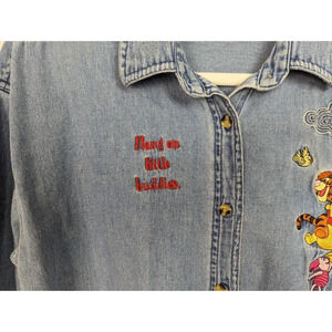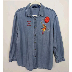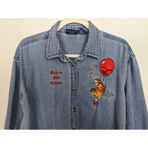 Disney VTG Y2K XL Winnie The Pooh Embroidered Chambray Denim Button Up Shirt Top