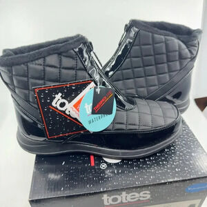 Totes Womens Slope Winter Snow Boots Waterproof Quilted Front Zip Black Size 9W