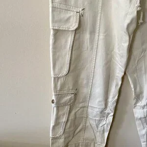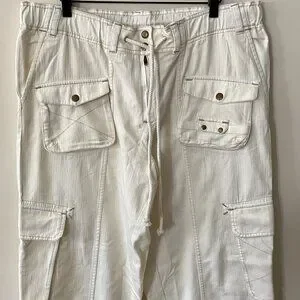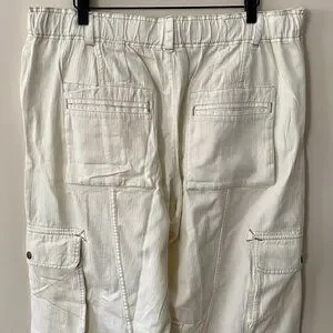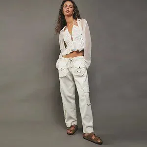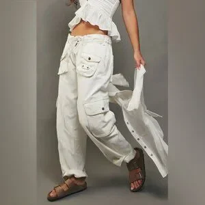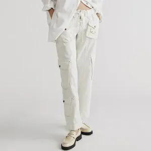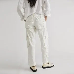 The coolest way to cargo, these timeless pants are featured in a herringbone weave low-rise, slouchy straight silhouette with utility-style pockets throughout and smocked waist for ease.