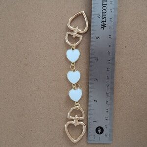 Elegant gold charm extender featuring white heart accents. Perfect for adding a touch of sophistication to any outfit.