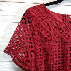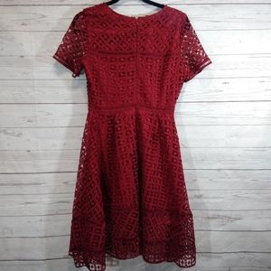 Cupcakes and Cashmere brick red lace short sleeve dress, zips up the back.