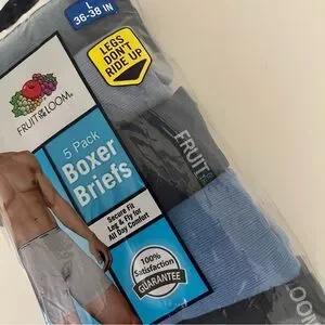 Fruit of the Loom 5 Pack Boxer Briefs L (36-38) Assorted Blues