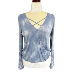American Eagle Soft Sexy Tie Dye Bell Sleeve Crossover Top Blue Gray