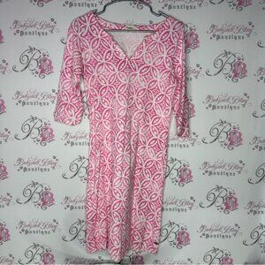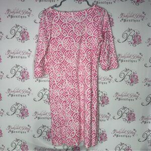 Stylish pink and white dress with a unique pattern. Perfect for casual outings. Small. Get ready for an abundance of compliments! π Youβll be celebrated for your exceptional taste! π