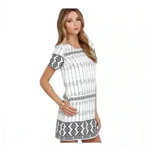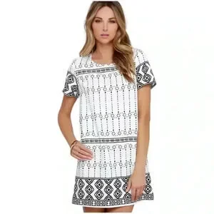 Lulu’s Graphic Price Black & White Shift Dress with Pockets