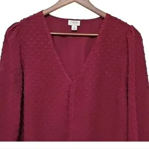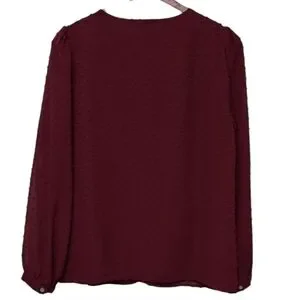 J. Crew Women's V-neck Clip-Dot Burgundy Blouse Size S