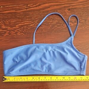 Dive into style with this Aerie bikini top, featuring a calming blue hue and a chic bandeau design. The single shoulder strap adds a unique touch, while the stretchy material ensures a comfortable fit for all your swim adventures.