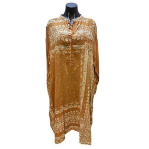 Magnolia Pearl Boho Style Mustard & Cream Floral Print Dress w/Button Front
