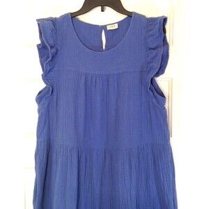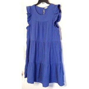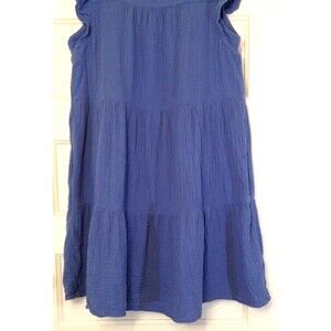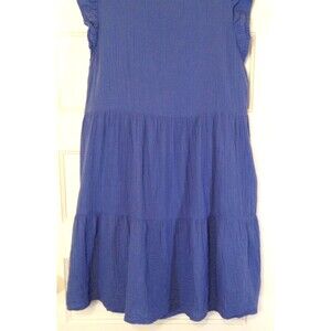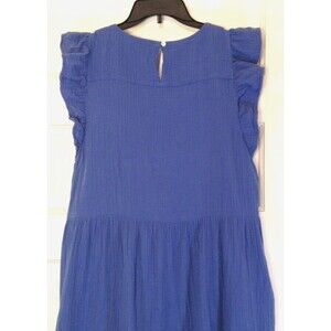 J.Crew 100% Cotton Blue Tiered Ruffled Feminine Coquette Cottage Peasant Boho Milkmaid Prairie Sun Beach Vacation Travel Lightweight Babydoll Dress with Flutter Sleeves & Pockets
