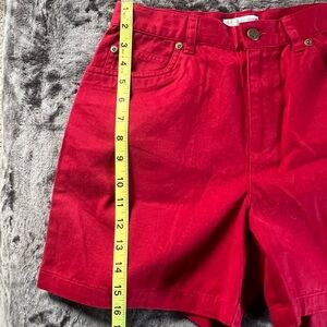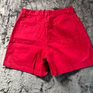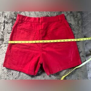 Jones New York Sport women's vibrant red high waisted, 5’ shorts, perfect for casual outings, and the warm weather. Size 6 petite. I think these fit a little more like a size 4, please see measurments. Excellent condition. 100% cotton.