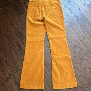 Bright orange corduroy pants with a stylish flare. Perfect for adding a pop of color to any outfit.