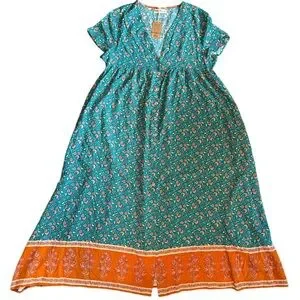 Natural Life Midi Dress NWT Pockets Avery Button Front Jade Floral Boho XL