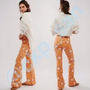 Rare printed Penny Pull On Flare jeans in color "Sunset Combo" in size 25. Classic Free People pull on flares are in a bold boho print featured in a mid-rise with an elastic waistband and back pockets. Fabric is very stretchy. Excellent condition with a flaw: the back hems are discolored from wear on the inside, not visible on the outside. Please see pictures for details, fabric content, condition & measurements, since it's part of the description. Sold out in stores, highly sought after. Reasonable offers welcome.