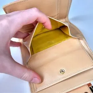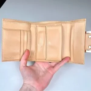 Very good pre loved condition! Canvas is clean, no rubbing. There is some rubbing on the interior and light residue in coin section. Comes with box (damaged)
