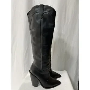 Raye 'Inferno' Black Leather Heeled Boot Size 5.5