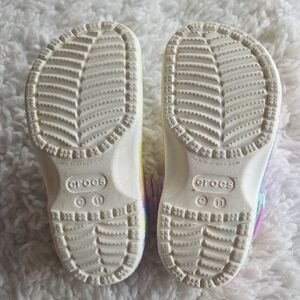 Comfortable and fun, these Crocs kids' clogs come in a delightful purple and vibrant multicolor design. Perfect for everyday wear, they offer easy slip-on convenience and durable comfort.