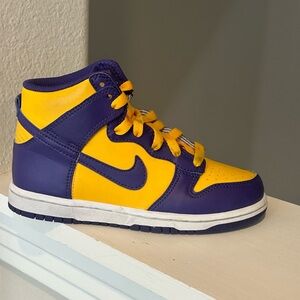 Nike Dunk High GS Lakers Court Kids Shoes 13C Purple Gold Sneakers DZ4455-500