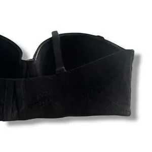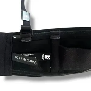 The Torrid Bra in women's plus size 40DD is a black curve push-up strapless bra with underwiring. It features a solid pattern, adjustable straps, and a push-up style for a flattering fit. The brand Torrid is known for its comfortable and supportive bras, designed specifically for plus-size women. This bra is perfect for those looking for a stylish and functional undergarment that offers both support and enhancement.