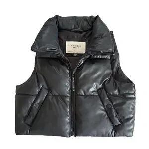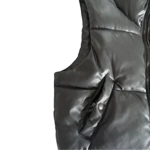 Black (Faux Leather) Puffer Cropped Puffer Vest