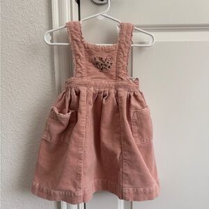Jamie Kay corduroy dress in rose. Sweet embroidery and two little pockets. Perfect for layering in all seasons.