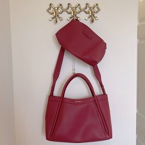 Red NEWBELLA Vegan Leather Tote Bag Shoulder Bag Handbag with Matching Purse