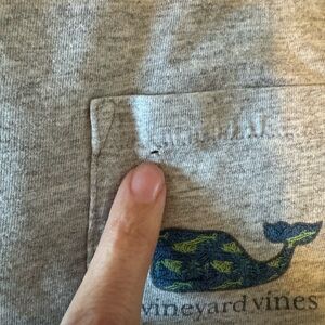 Gray Vineyard Vines t-shirt featuring a blue whale logo with green accents. Loved youth size large see photos for flaws