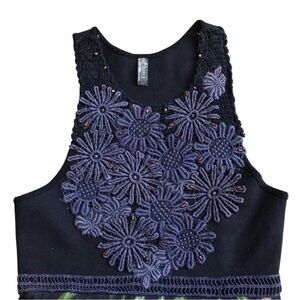 Free People Unique Wool Floral Dress Crochet Sleeveless romcom core Boho Small