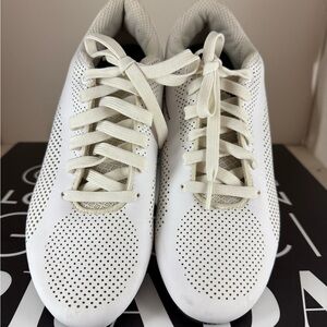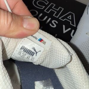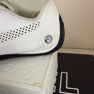 These Puma athletic shoes feature a sleek white and black color scheme, perfect for a minimalist look. The perforated upper enhances breathability, while the reinforced eyelets ensure durability. Ideal for both casual wear and light athletic activities.