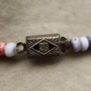 This exquisite necklace features a harmonious blend of pink and purple glass beads creating a stunning and unique piece. The beads are strung in a single strand, showcasing their beauty and elegance. Perfect for adding a touch of sophistication to any outfit.