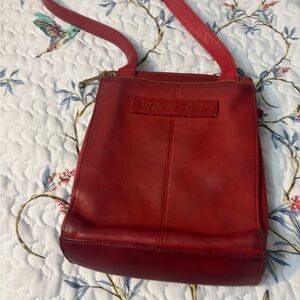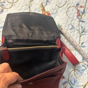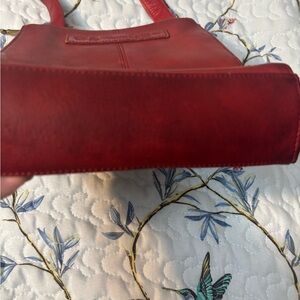 This Fossil crossbody bag in a striking red hue combines elegance with functionality. Crafted from a luxurious leather-like material, it features a structured rectangular shape and a classic flap closure, making it an ideal choice for everyday use.