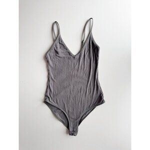 Aritzia TALULA Kinver Graphite Grey Ribbed Modal Jersey V-Neck Bodysuit, Size XS