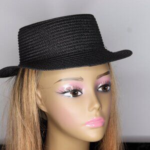 Classic & Versatile: A chic black straw hat with a short brim for a modern, polished look.