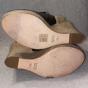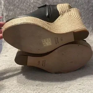 Gucci Black ‘Tiffany’ Peep Toe Espadrille Wedge Sandals size 38.5