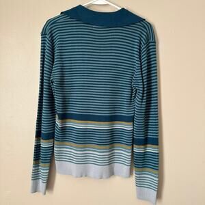 Sundowner Vintage Sweater Men LARGE 1980s Knit Striped Retro Preppy Hipster Blue