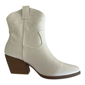 White Soda Blazing Western Ankle Boots with Pointed Toe and Stacked Heel Size 8