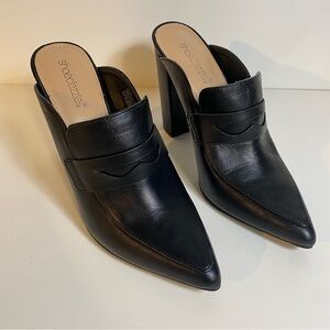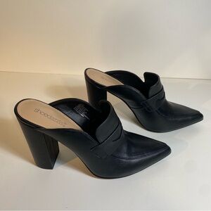 Shoe Dazzle Black Heel Faux Leather Mules Size 7.5