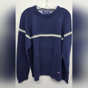 VINTAGE Tommy Hilfiger Sweater Men Extra Large Pullover Blue Knit Grandpa Preppy